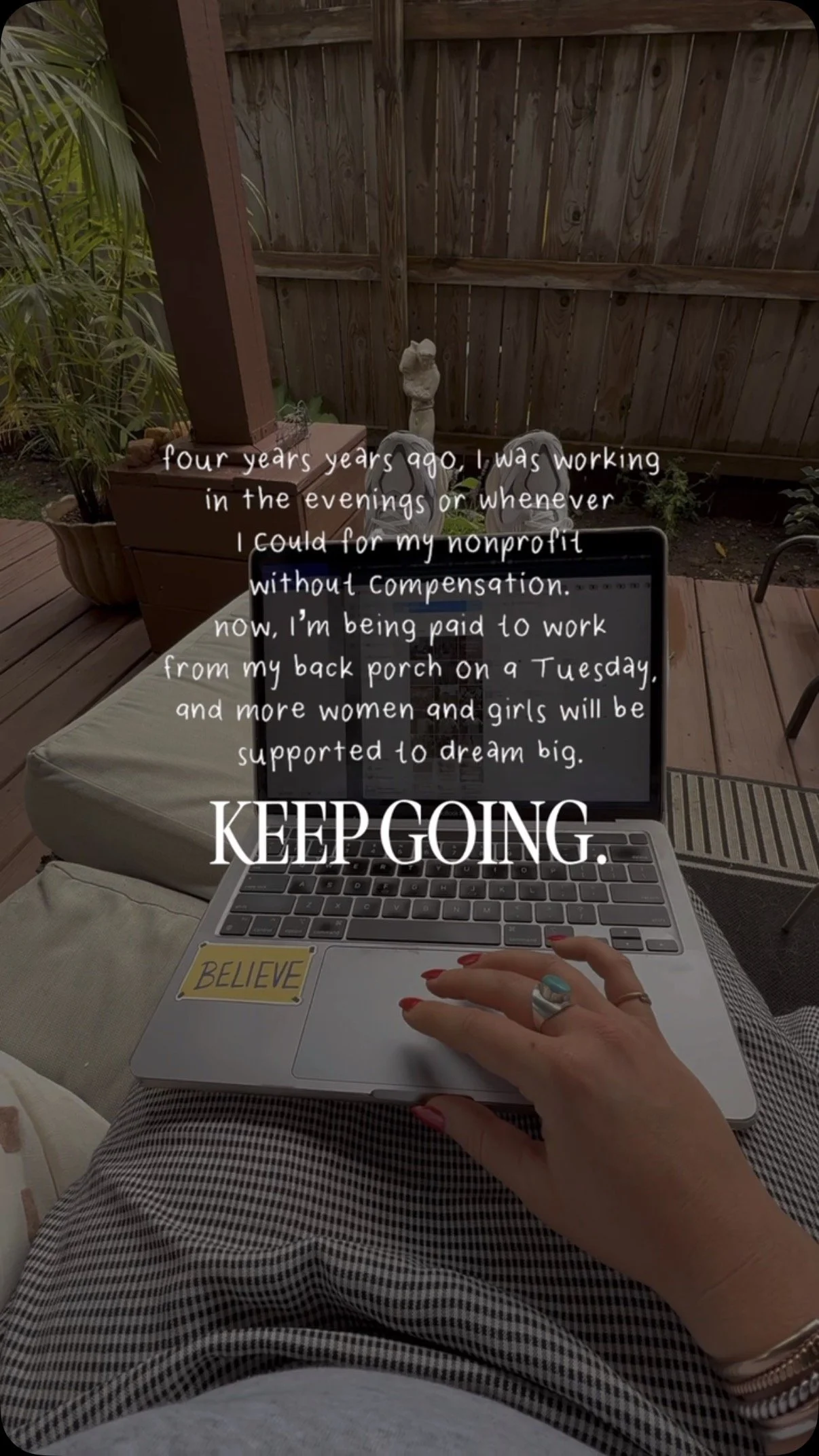 When I think of her, I am reminded of how lucky I truly am. No matter what season I am going through emotionally, I have a partner who still loves me, and that brings me so much relief. She’s my stone that never burns. How lucky am I?